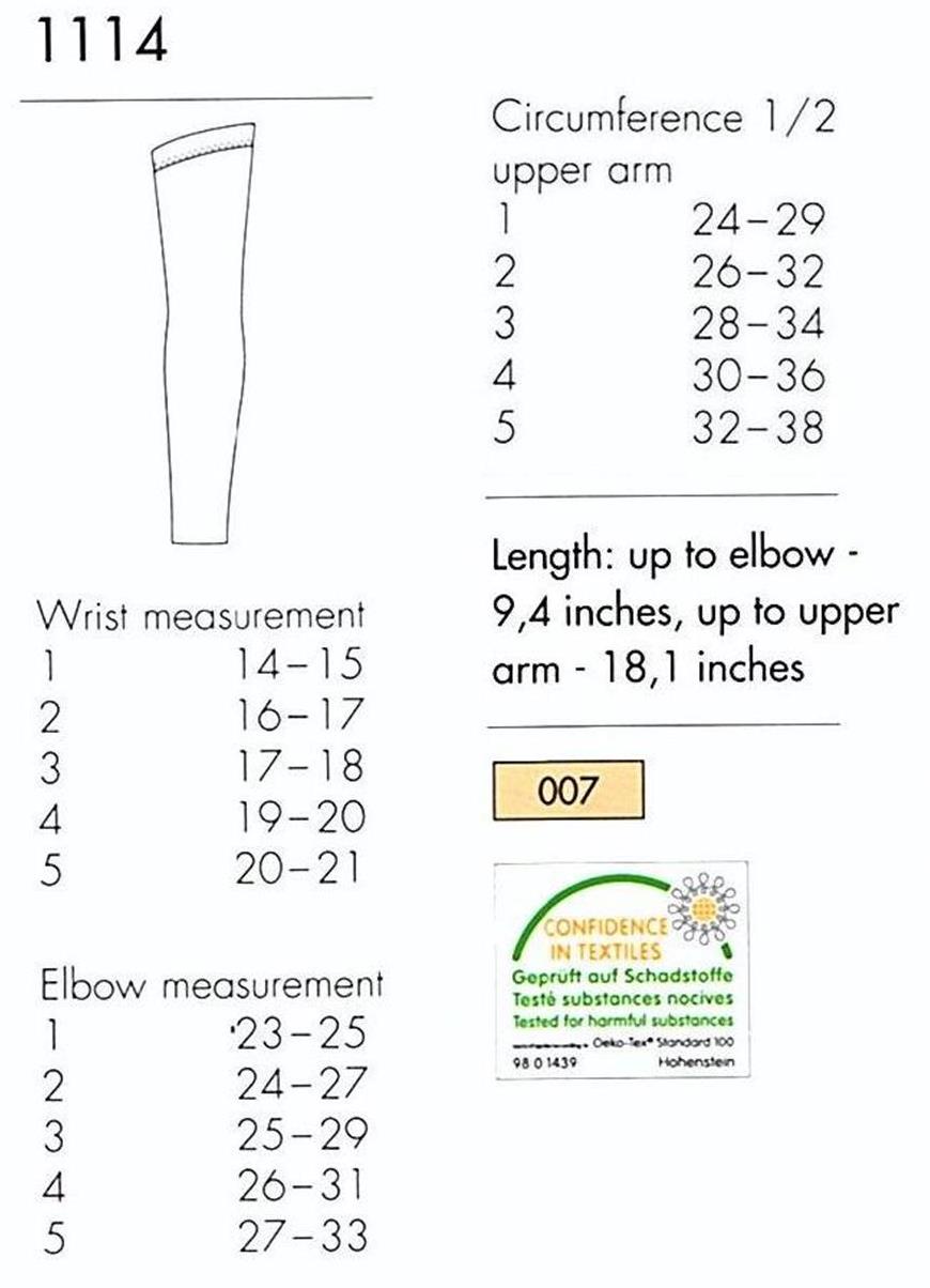 Sizes Of Anita Hamburg Lymph-O-Fit Lymph Relief Arm Sleeves