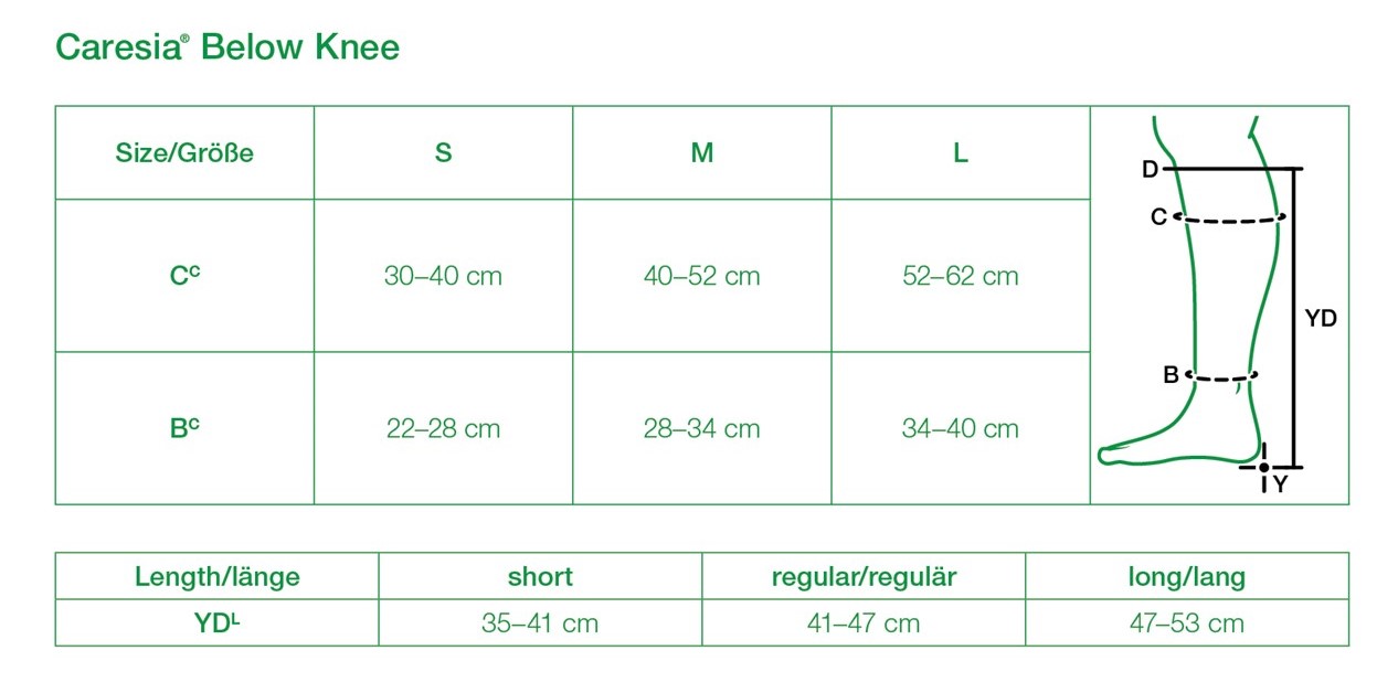 We have Solaris Caresia leg sleeves available in 3 different sizes and 3 lengths: