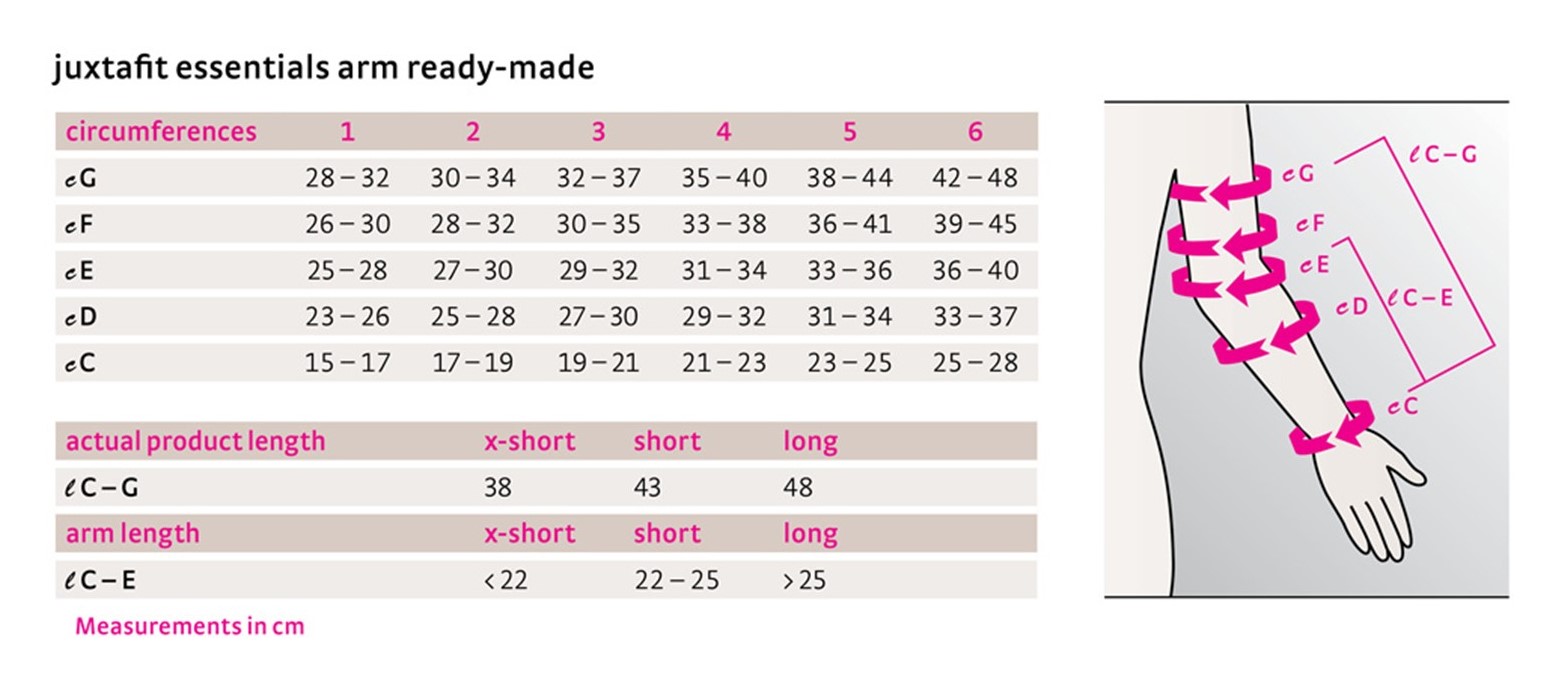 We have CircAid Juxtafit Essentials compression arm wraps available in 6 different sizes and 3 lengths:
