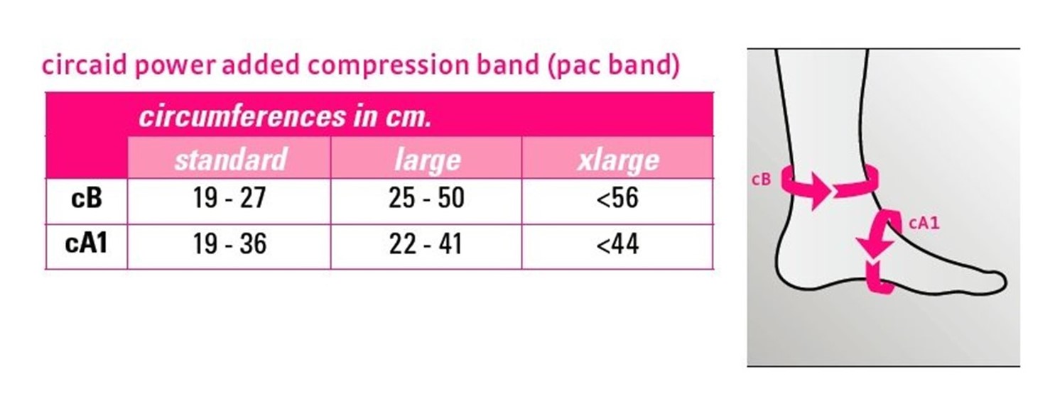Click here to open the CircAid Power Added Compression (PAC) Band compression anklet sizing chart.
