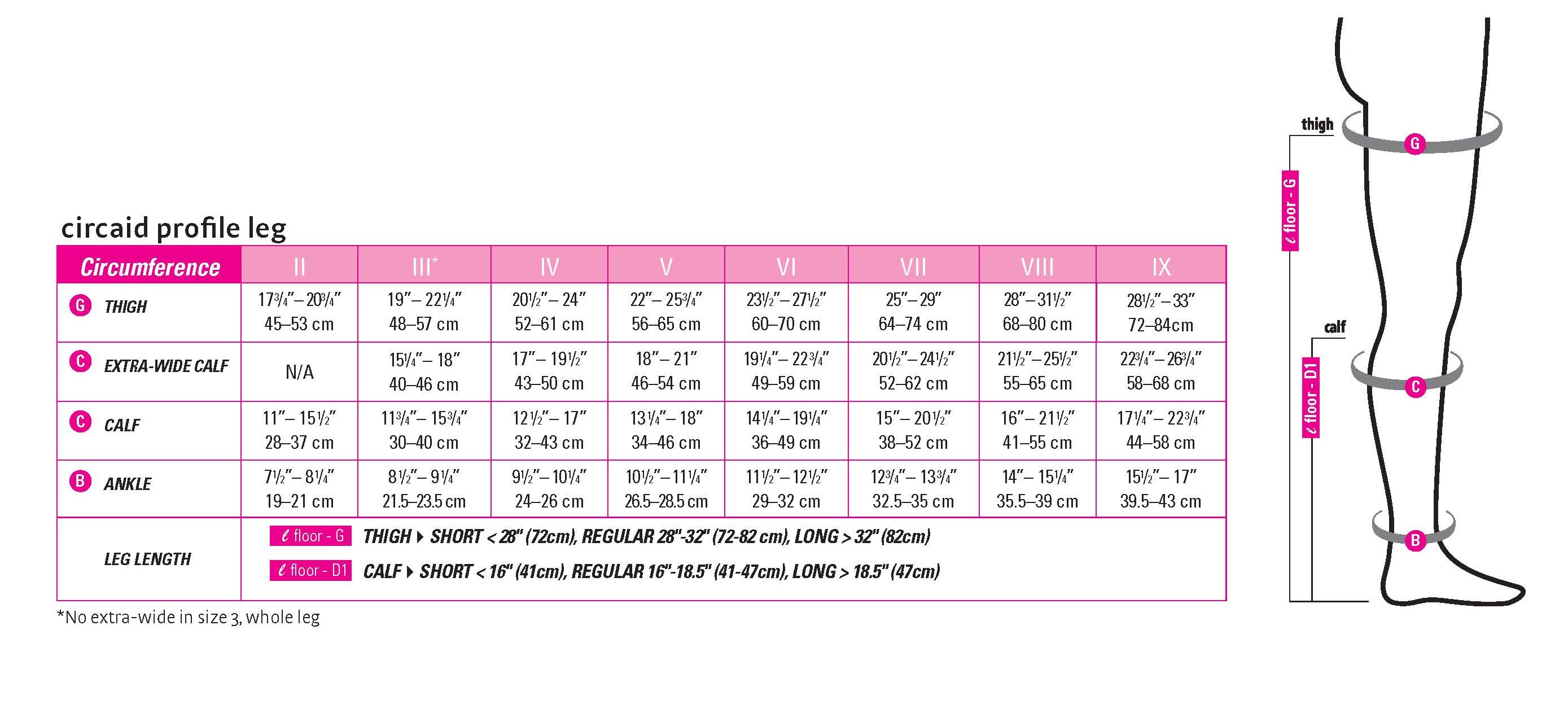Click here to open the CircAid Profile nighttime compression full leg sleeve sleeve sizing chart.