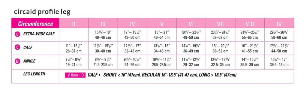 Click here to open the CircAid Profile nighttime compression sleeve sizing chart.