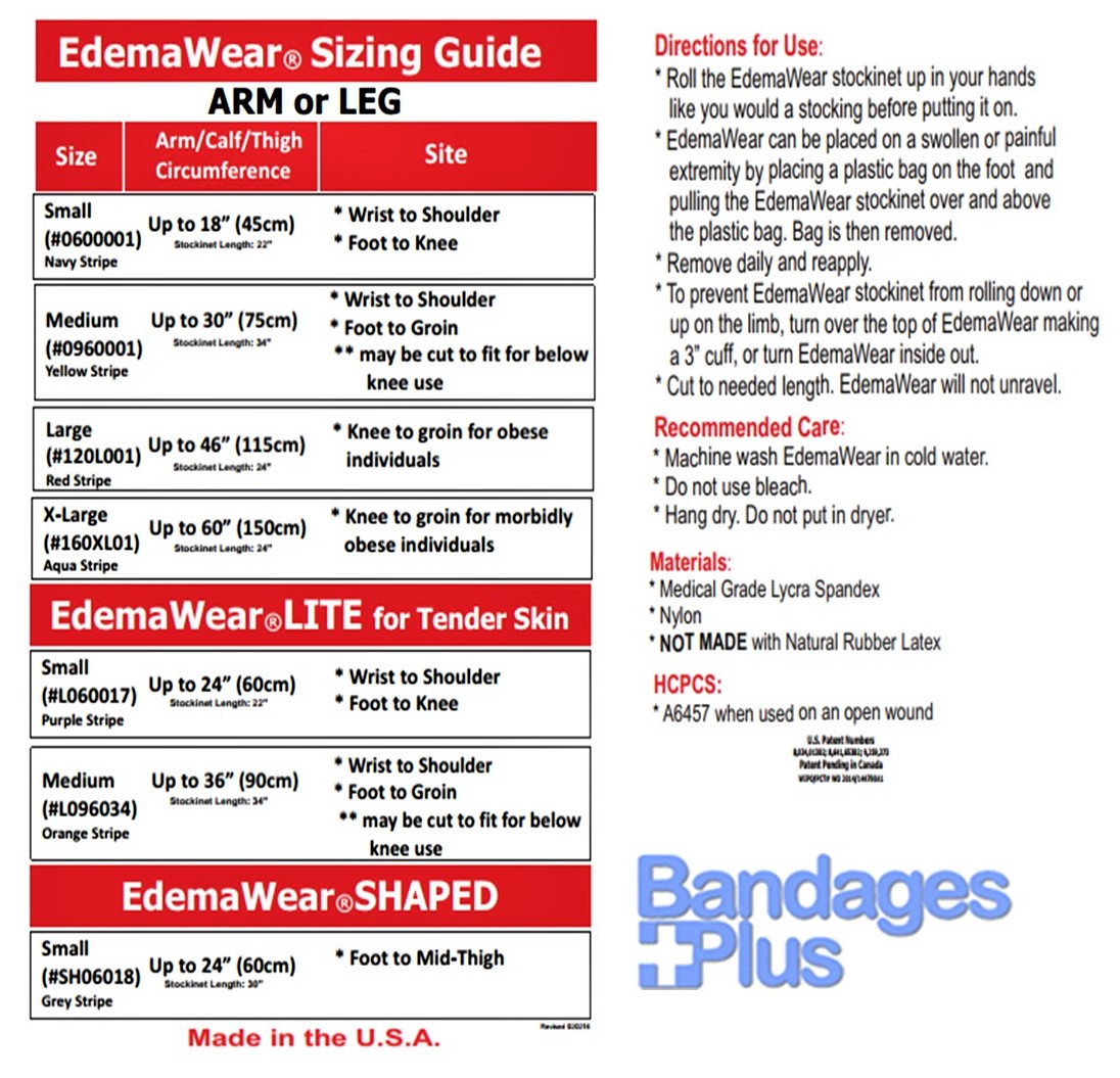 - Edema Wear stockings (EdemaWear) are also referred to as Edema Wear socks, EdemaWear compression stockinette, and Edema Wear tubular stockinettes.