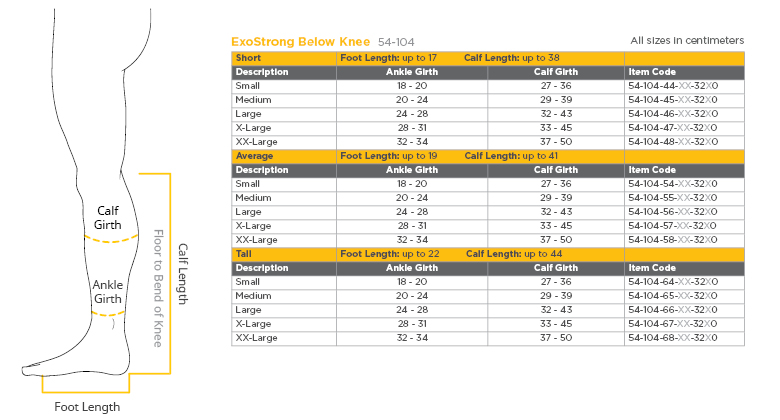 Click here to see the sizing chart for the ExoStrong knee high compression stocking.