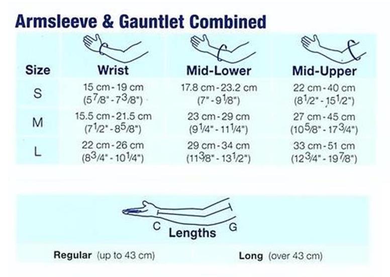 Click here to open the Bella Lite combination arm sleeve and gauntlet sizing chart