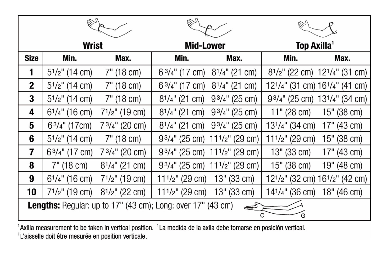 Click here to open the Jobst Bella Strong compression arm sleeve sizing chart.