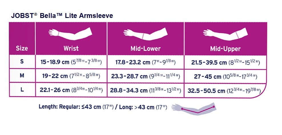 Click here to see the sizing chart for Jobst Bella Lite compression arm sleeves!