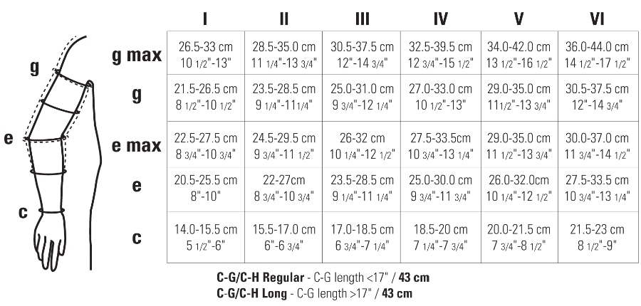 - - Size VI compression arm sleeves (available in regular or long length; regular or maxi width)