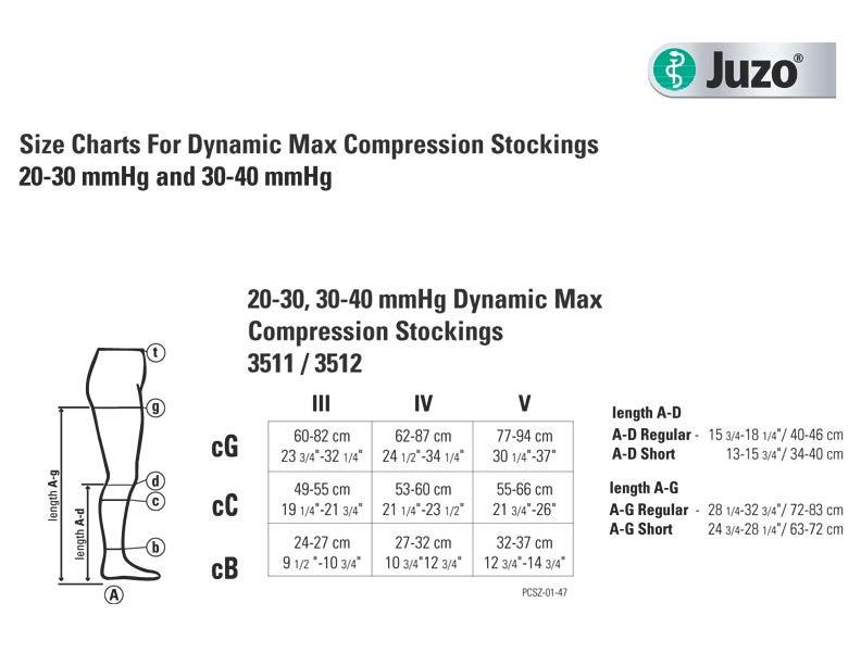- Juzo Dynamic Compression Stockings 20-30 and 30-40 mmHg size chart (MAX width).