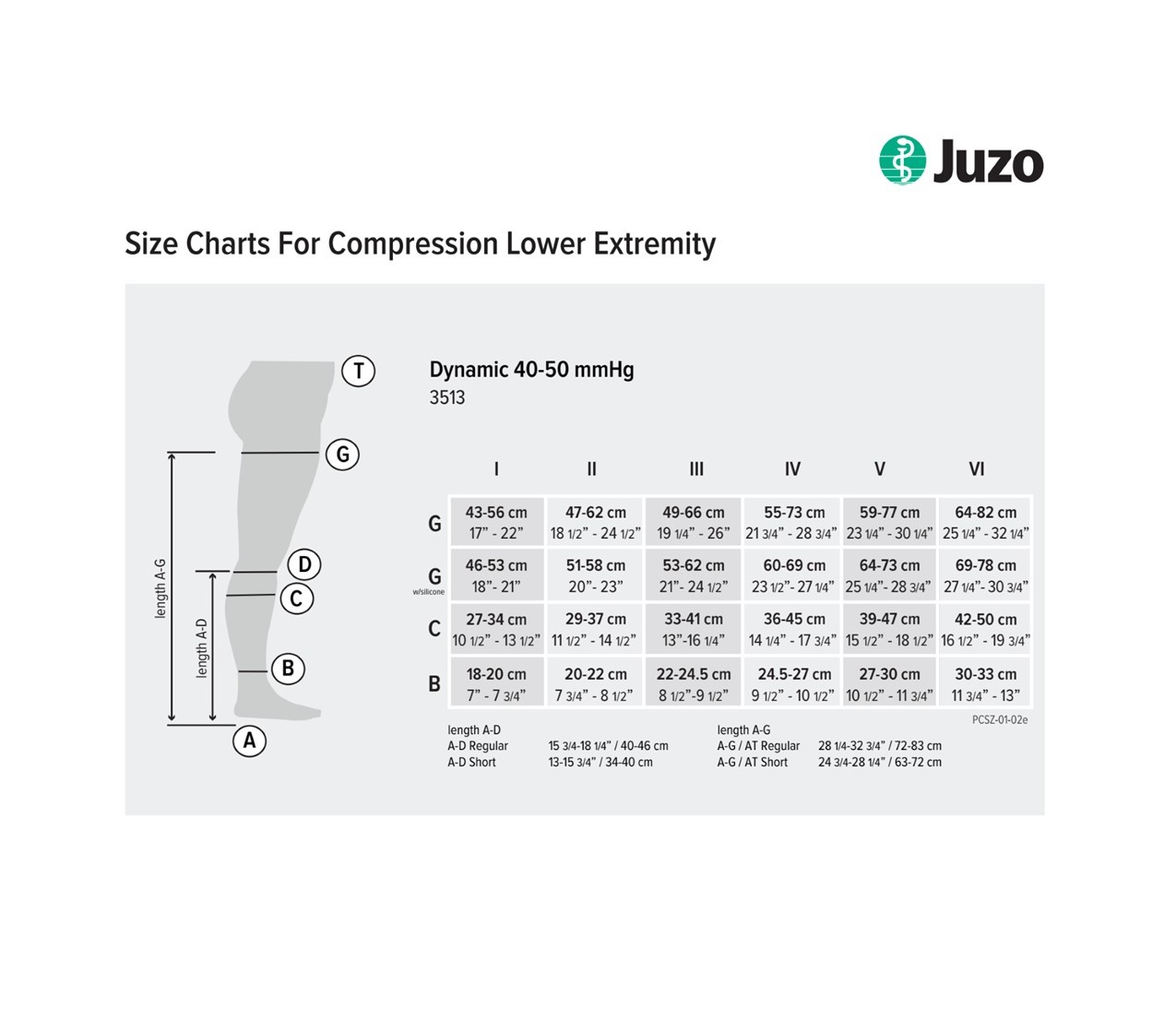 - Juzo Dynamic Compression Stockings 20-30 and 30-40 mmHg size chart (REGULAR width).