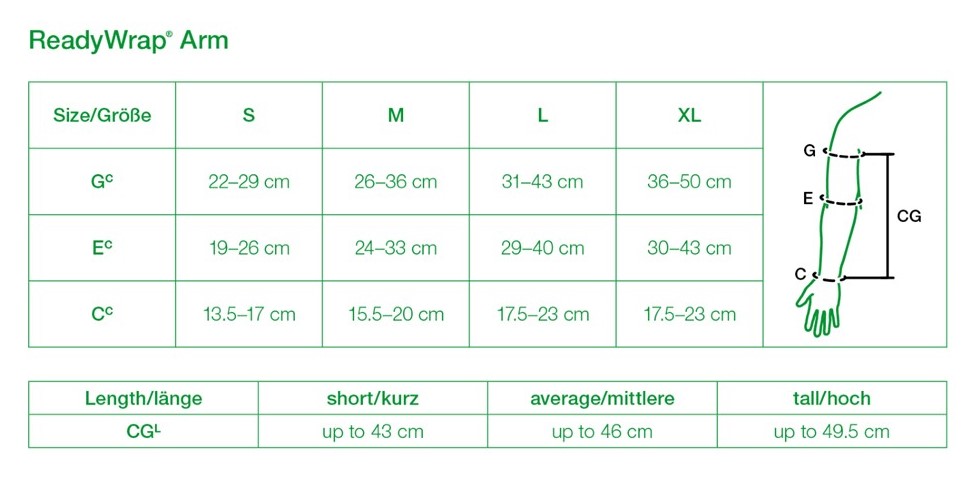 Click here to open the ReadyWrap arm compression wrap sizing chart.