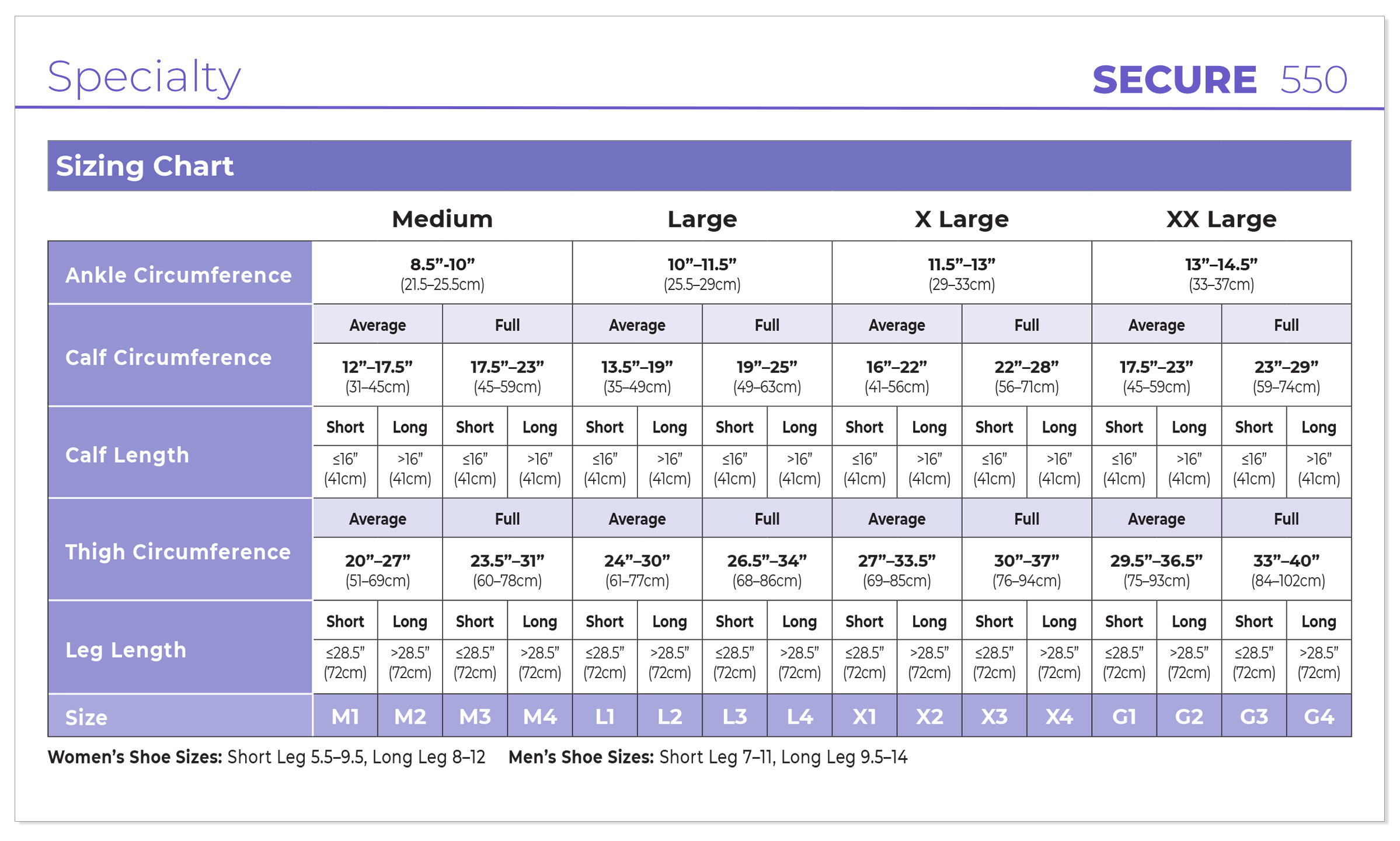 We have thigh high Sigvaris Secure compression stockings available in a wide range of sizes: