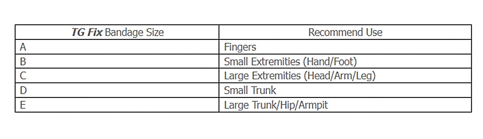 Click here to see a printable version of the TG Fix tubular elastic fixation bandage sizing chart.